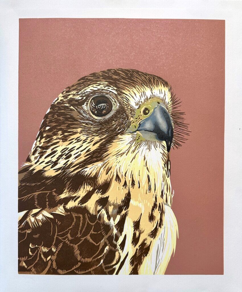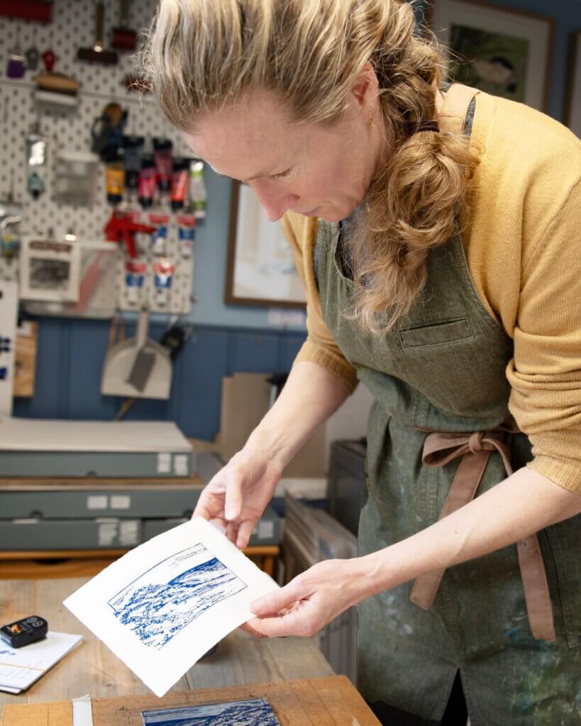 Yvette Schoenmakers maakt linosnedes van vogels en waddennatuur. Op zondag is zij met haar linosnedes van vogels te vinden bij Natuurcentrum de Marel.